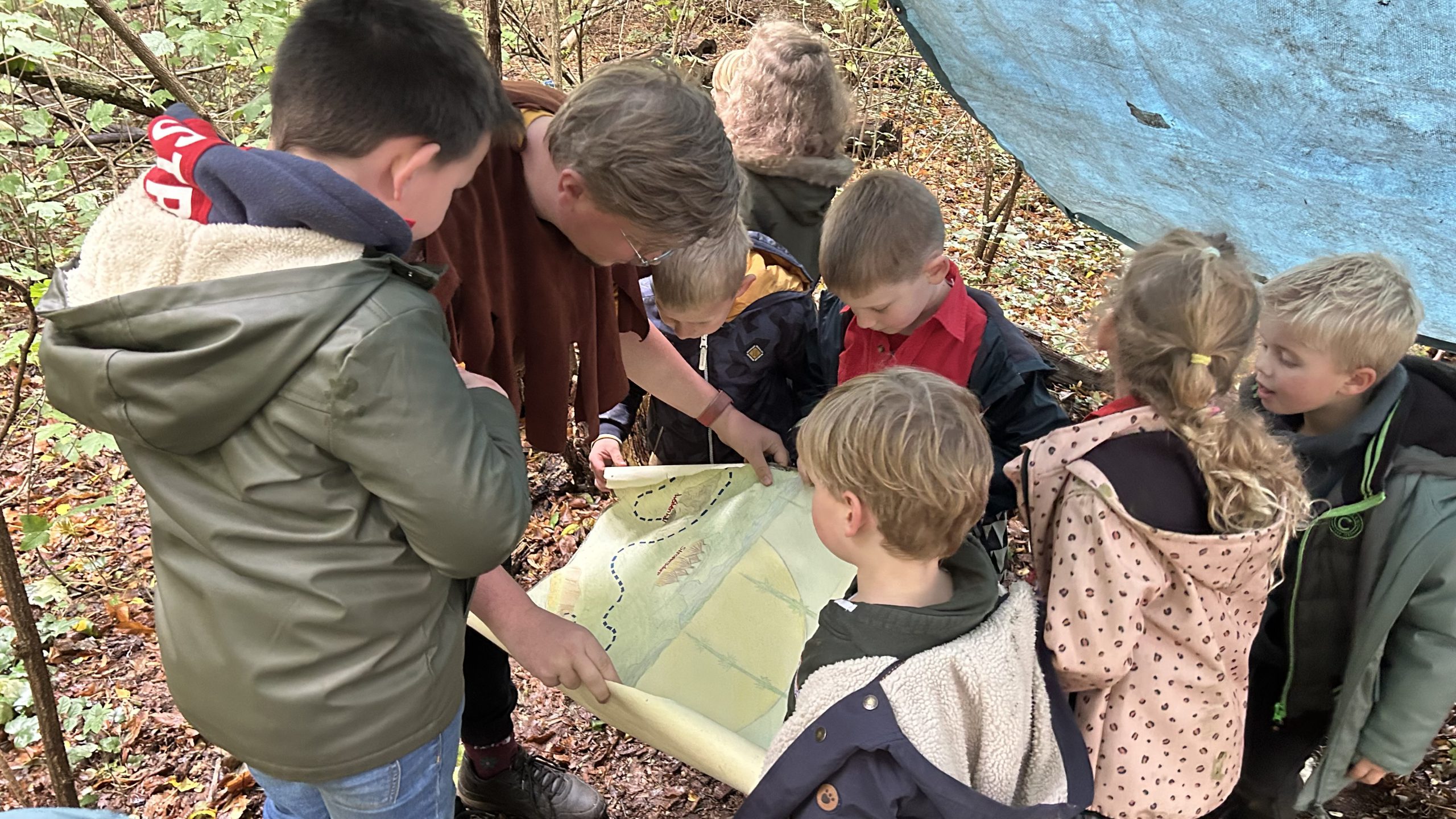 Later op de dag hoorden we wat knallen in de buurt van het kampje en zijn de bevers samen met Mowgli er op afgegaan. Daar kwamen we een hele bange stroper tegen. De stroper was zo bang voor de bevers dat hij is gevlucht. In alle drukte is de stroper zomaar de kaart van de jungle vergeten mee te nemen. Mowgli heeft samen met de bevers de kaart weer teruggevonden!