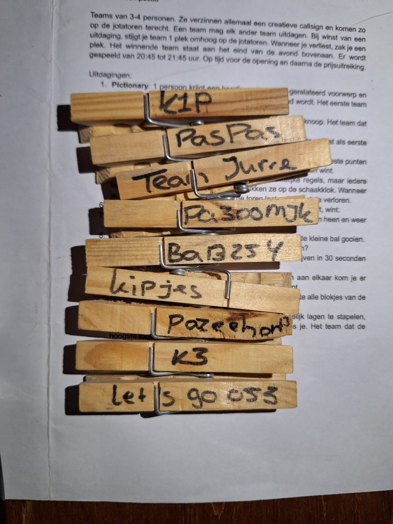 Voor de landelijke opening hadden we nog een spel met alle 15+ leden. De laddercompetitie Jota versie. Het doel was om doormiddel van tegen andere teams spellen te spelen zoals, blokjesvoetbal, pictonary, morsebingo, ect. om bovenin de mini Jota toren te komen. Ook had elk team een callsign waarmee ze tussendoor gestoord werden met een portofoon. De uiteindelijke winnaar was K1P.