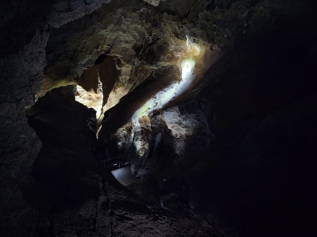 In de 350 miljoen jaar oude kristalgrot zijn we 70 meter afgedaald via trappen. Een gids vertelde ons onderweg van alles over de geschiedenis van de grot. Terug naar boven was een behoorlijke klus, want waar je naar beneden ging via redelijk normale trappen, moest je naar boven via een trap die bijna een ladder was.